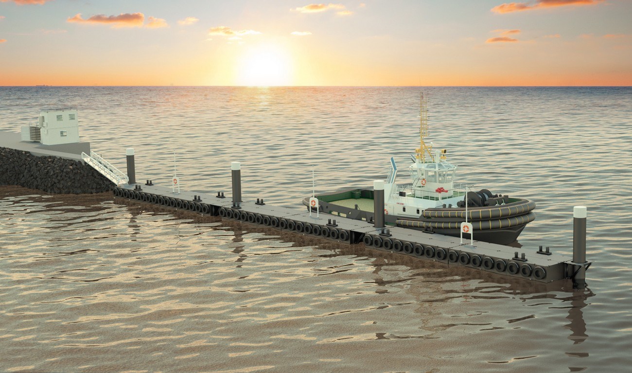 Описание: Причал состоит из двух плавающих понтонов, которые